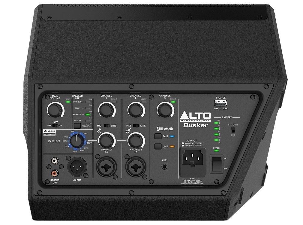 Verleihen Sie Ihrem Gesang oder Ihren Gitarren mit dem integrierten Alesis FX-Processing einen zusätzlichen Glanz und polieren Sie den Sound selbst in intimsten Umgebungen. Busker verfügt über Bluetooth auf Kanal 3, um Backing Tracks kabellos von Ihrem Smart Device zu übertragen. Spielen Sie Rhythmustracks ab, während Sie dazu jammen, oder proben Sie mit Ihrer Lieblingsmetronom-App, um Ihre Finger vor der Showtime locker zu halten. Wenn Sie Ihr Smartgerät dabei haben, können Sie die kostenlose Alto App für iOS und Android aufrufen, um Ihre bevorzugten Konfigurationseinstellungen schnell zu laden. Ein verfügbarer 1/8 AUX-Eingang ermöglicht den Anschluss Ihrer Lieblings-Soundquellen wie Drumcomputer oder Grooveboxen, um Sie mit einem einfachen Anschluss im Takt zu halten.
