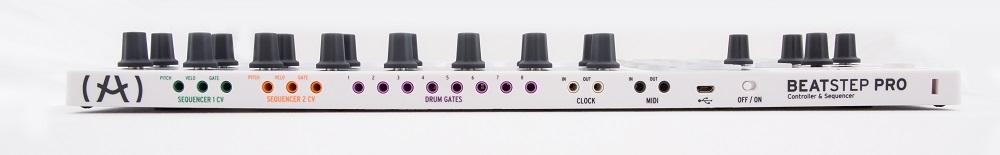 BeatStep Pro bietet USB In/Out, MIDI In/Out und umfangreiche CV/Gate Anschlüsse und kann sowohl als Master, als auch als Slave in bestehende Setups integriert werden.