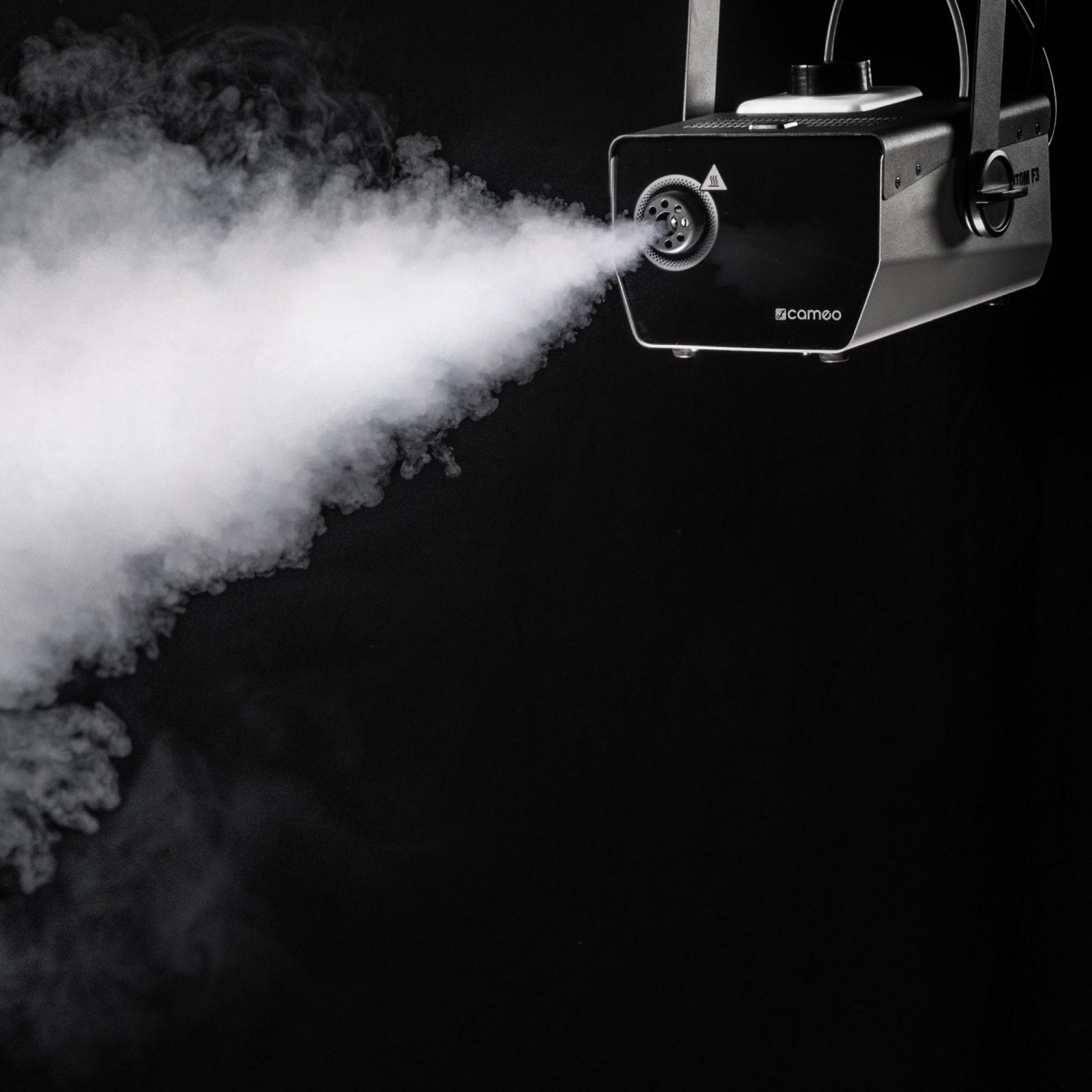 Für tolle Effekte auf Veranstaltungen muss der Nebel schnell zur Verfügung stehen und genau diese Anforderung erfüllt diese Nebelmaschine. Sie eignet sich besonders für Verleihfirmen, Live-Events, Diskotheken und Musiker. Das robuste Stahlgehäuse hält auch Einsätzen stand, wo es einmal härter zur Sache geht und der Montagebügel dient zur stationären Befestigung oder als Tragegriff. Eine schnelle Reaktionszeit hat diese Nebelmaschine, um die ständige Einsatzbereitschaft des Geräts zu gewährleisten. Durch optimal koordinierte Aktivierung von Pumpe und Heizwicklung wird der Nebel schneller ausgestoßen. Dies wird durch die intelligente Software erreicht, welche das präzise Zusammenwirken der Komponenten im Inneren steuert. Die so erreichte Feinabstimmung zwischen Heizelement und Pumpe sorgt für gleichmäßige Nebelerzeugung in jeder Intensitätsstufe.Über eine Funkfernbedienung oder Kabelfernbedienung lässt sich der Nebelausstoß auch aus der Entfernung ein- und ausschalten. An den Geldbeutel wie auch an die Umwelt ist gedacht, denn der Einsatz erfolgt wirtschaftlich und umweltfreundlich unter Verwendung herkömmlichen Nebel-Fluids auf Wasserbasis (z.B. Cameo DJ Fluid). Der herausnehmbare Fluid-Behälter erleichtert das Nachfüllen. Ein toller Effekt für den Bediener selbst ist die Beleuchtung des Fluid-Behälters von innen, um auch im Dunkeln stets den Füllstand des Fluids im Auge behalten zu können. Der integrierte Überhitzungsschutz verlängert die Lebensdauer des Geräts und steigert die Betriebssicherheit gleichermaßen. Mit der integrierten Kabelöse zum Anschlagen eines Sicherheitsfangkabels ist die Montage in der Höhe und über Kopf unter Einhaltung der gebotenen Sicherheitsvorkehrungen problemlos möglich.