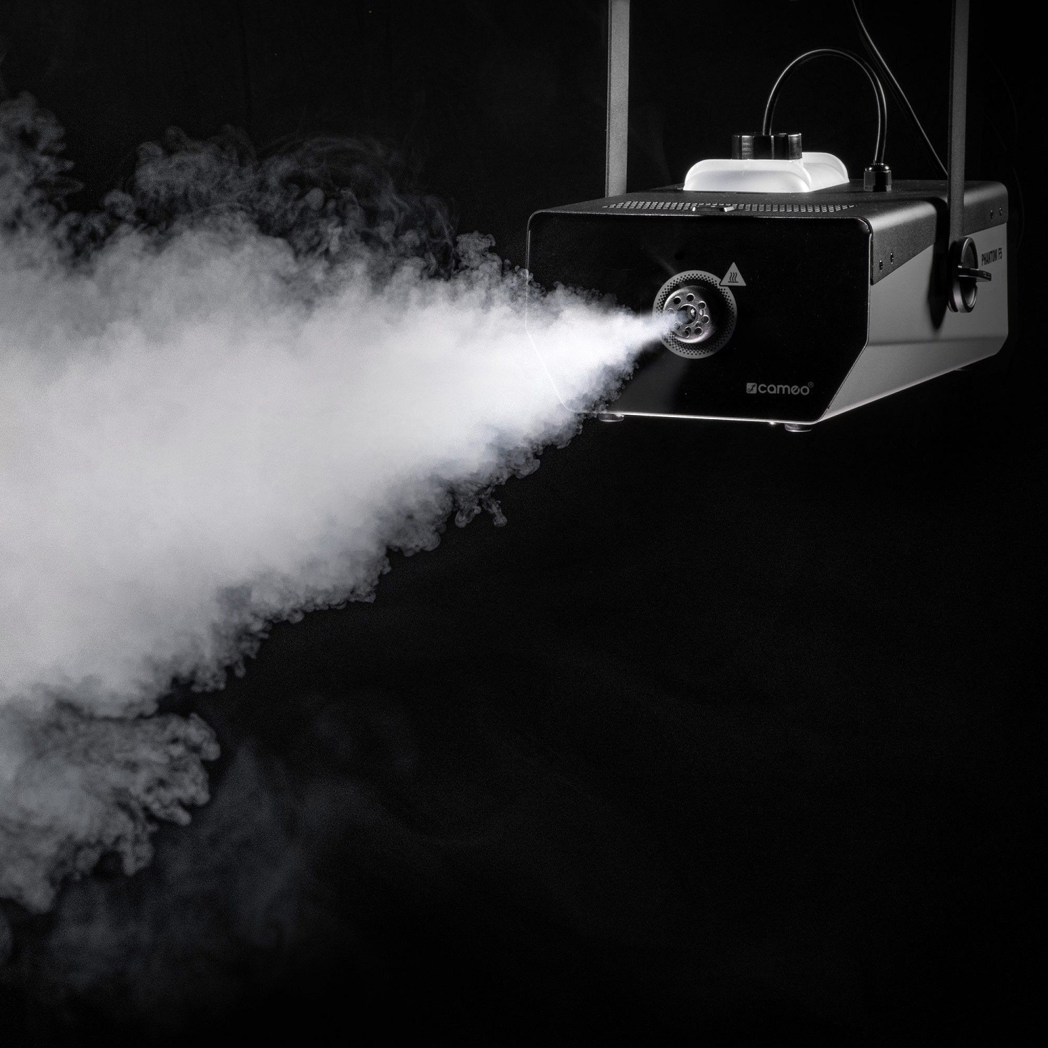 Dank der schnellen Reaktionszeit der Nebelmaschine Cameo PHANTOM 5 sind Sie auf der Bühne "always ready" - ideal für kleinere Verleihfirmen, Djs und Musiker. Mit einem 1500 Watt Heizelement und einem Ausstoßvolumen von 509 m3/min erzeugt sie nach nur 4 Minuten Aufwärmzeit einen besonders gleichmäßigen Nebel. Mit einer Nebelreichweite von ca. 7 Metern eignet sich die Cameo PHANTOM F5 auch für mittelgroße Bühnen. Die perfekte Grundlage für anspruchsvolle und atmosphärische Lightshows!Ermöglicht wird die schnelle Reaktionszeit durch eine intelligente Software und optimal aufeinander abgestimmte Komponenten. Pumpe und Heizung greifen so ineinander, dass der Nebel schneller ausgestoßen werden kann. Der Tank mit 1,8 Liter Fassungsvermögen wird zum Befüllen einfach aus dem Gehäuse entnommen und die integrierte, zweifarbige Tankbeleuchtung sorgt dafür, dass immer klar ersichtlich ist, wie viel Fluid noch im Gerät vorhanden ist. Die Konfiguration erfolgt entweder über das LED-Display an der Nebelmaschine selbst oder alternativ über die im Lieferumfang enthaltene Multifunktionsfernbedienung. Neben dem Standalone-Betrieb kann die Cameo PHANTOM F5 auch über DMX gesteuert werden.