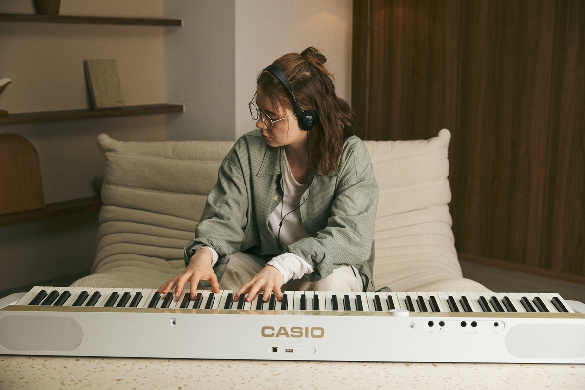 Limited Edition des erfolgreichen PX-S1100 in der Farbe Mellow BeigeDie PX-S1100MB (Mellow Beige) kombiniert ein warmes, weiches Beige mit grünen Filzdetails, die an Zimmerpflanzen erinnern. Diese Elemente sorgen für einen ruhigen und einladenden visuellen Eindruck für den Benutzer.