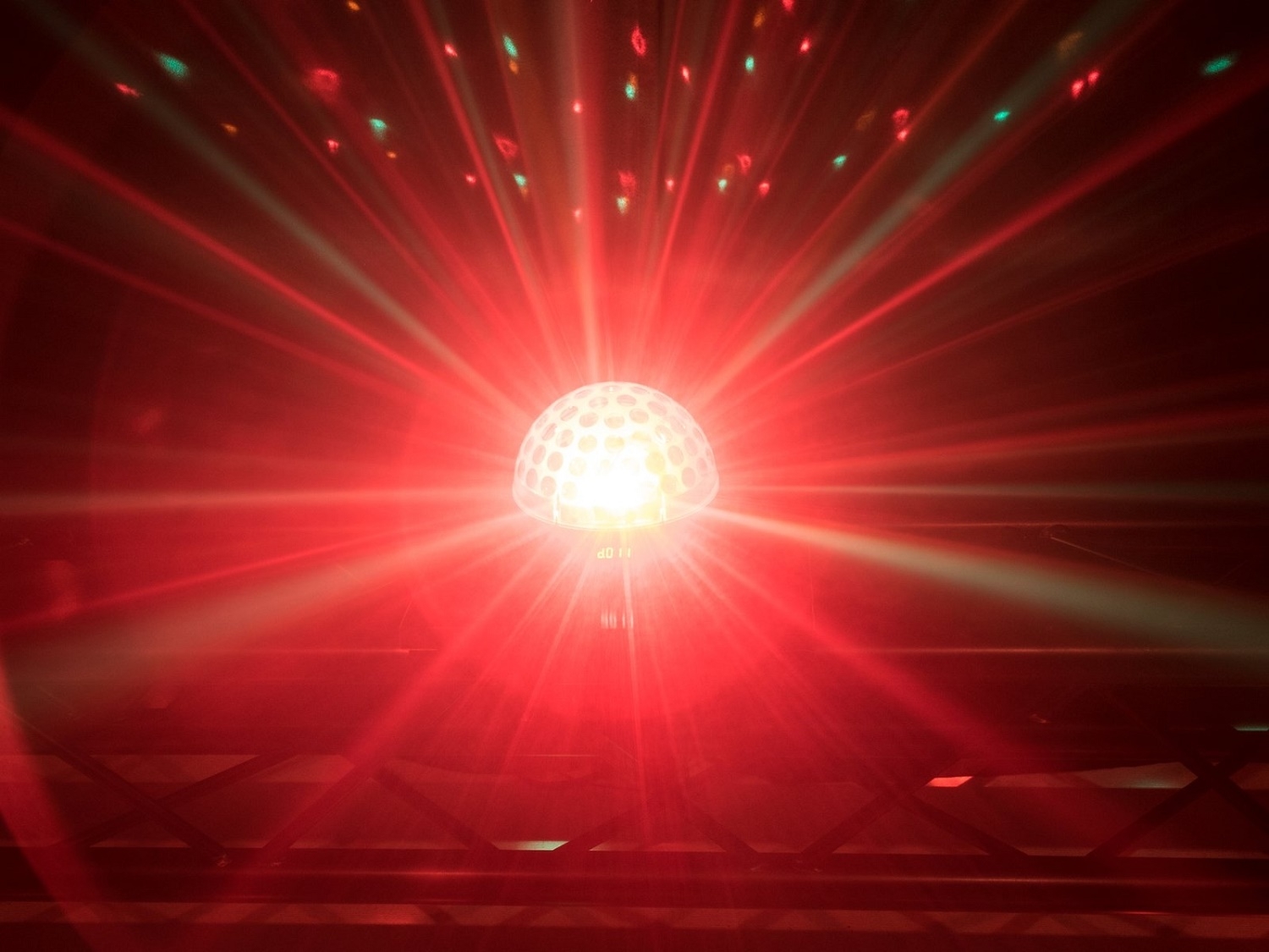 Der LED BC-6 Strahleneffekt von Eurolite bietet herrlich bunte, raumfüllende Farbeffekte und vielfältige Funktionen:Die facettierte Acrylglaskugel mit sechs hellen LEDs in Rot, Grün, Blau, Amber und Weiß projiziert kreisförmige Lichteffekte mit aufregenden Farbmischungen, schnellen Farbwechseln, gedimmtem Licht sowie rasanten Strobe-Effekten - steuerbar im Standalone-, Master/Slave-, Automatik- oder DMX-Modus (9 DMX-Kanäle) oder per Musiksteuerung über das integrierte Mikrofon. Die Rotation des Motors kann manuell zwischen 0 und 50 Rotationen pro Minute eingestellt werden.