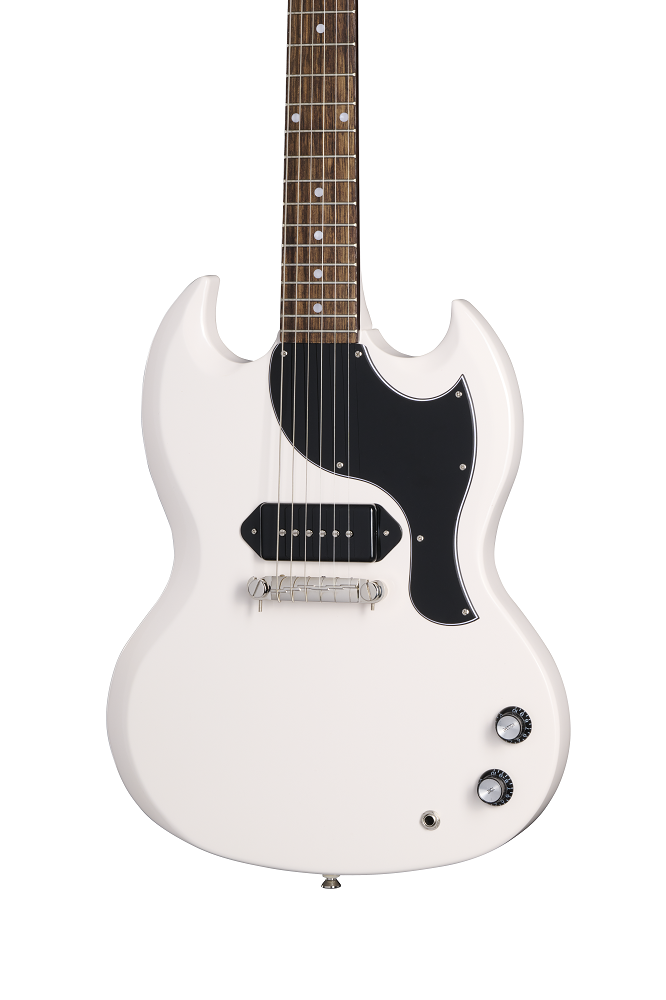 Als langjähriger SG Junior-Fan hat YUNGBLUD in Zusammenarbeit mit Epiphone sein erstes Signaturmodell. Die YUNGBLUD SG Junior hat einen Mahagonikorpus und einen eingeleimten Mahagoni-Hals mit einem SlimTaper C-Profil und einem Lorbeer-Griffbrett, das mit 22 mittelgroßen Jumbo-Bünden ausgestattet ist. Epiphone Deluxe Vintage Mechaniken und ein Graph Tech Sattel sorgen für eine solide Stimmung, während eine kompensierte Wraparound-Brücke die Saiten am anderen Ende verankert und zum hervorragenden Sustain des Modells beiträgt. Die einfache, aber effektive Elektronik umfasst einen einzelnen Dogear Epiphone P-90 Pro Tonabnehmer in der Stegposition, der mit CTS-Potentiometern für Lautstärke und Ton verdrahtet ist. Ein Epiphone-Hartschalenkoffer mit pinker Innenausstattung und ein gestanzter YUNGBLUD-Aufkleber sind ebenfalls im Lieferumfang enthalten.