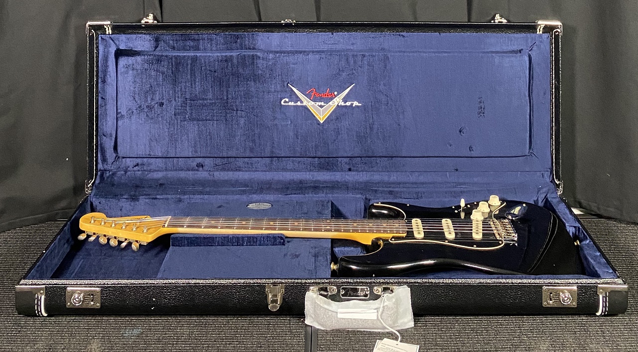 Ein Trio handgewickelter Dual Mag II Tonabnehmer mit einem umgekehrt gewickelten/umgepolten mittleren Tonabnehmer bietet einen ausgewogenen Ton, schimmernde, klare Höhen und ausgewogene, satte Bässe durch ½ Blender"-Verkabelung mit Tone Saver Treble Bleed, wodurch der Steg-Pickup in den Positionen 1 und 2 gemischt werden kann. Zu den weiteren Merkmalen gehören ein Fünf-Wege-Schalter, ein dreilagiges schwarzes Schlagbrett, ein synchronisiertes Custom Shop Vintage-Tremolo, Vintage-Stimmmechaniken, ein Knochensattel und ein Flügelsaitenhalter mit Metallabstandshalter.