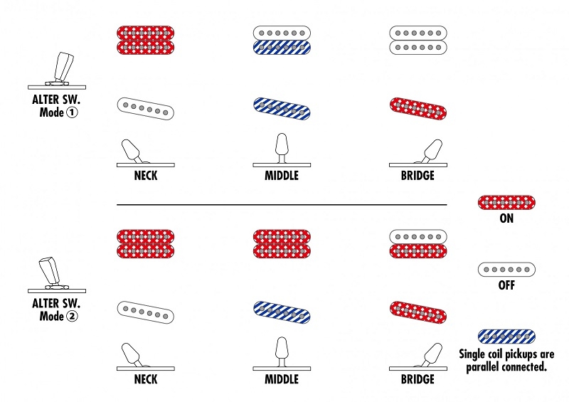 1x Seymour Duncan Magic Touch-mini (Hals) und 1x Seymour Duncan Alnico II Pro Custom (Brücke)