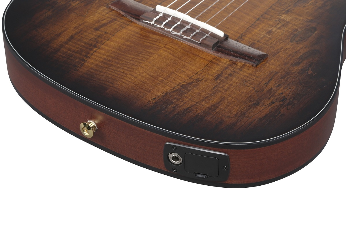 Die Gitarre produziert kein störendes Feedback, da es kein Schallloch auf der Korpusdecke gibt, weshalb sie perfekt für die Bühne und den Heimgebrauch geeignet ist. Die Schallloch-Öffnung an der Korpusseite erlaubt es dennoch den reinen Akustikklang dieser Gitarre klarer und direkter zu hören und zu fühlen.