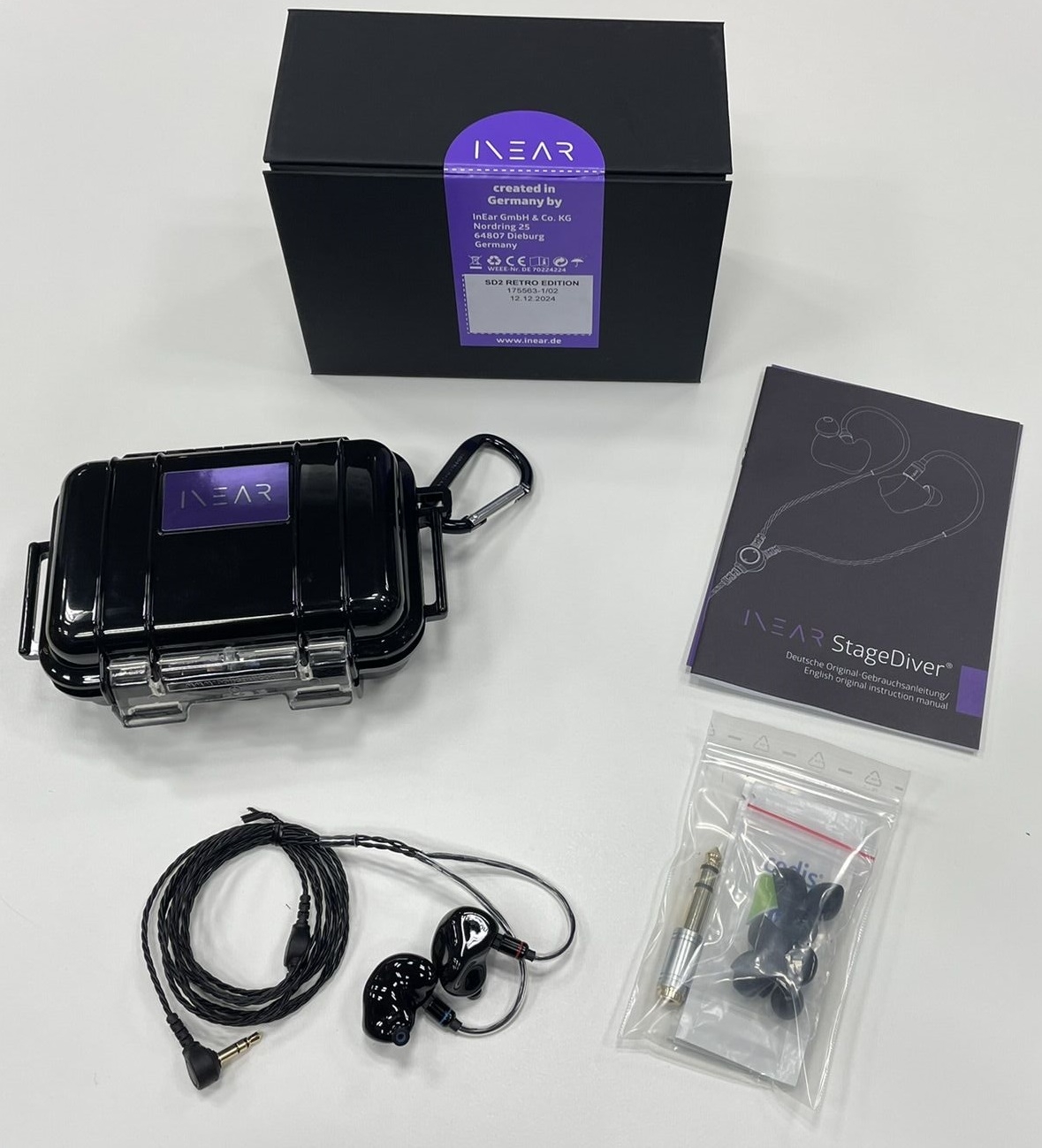 Diese Edition beinhaltet den original StageDiver SD-2 genauso wie man ihn kennt in der Farbe All Black (Faceplate und Shell) dezent mit unserem Firmenlogo. Der Hörer kommt im Set mit einem hochwertigen schwarzen Kunststoff-Case.Klangsignatur StageDiver 2