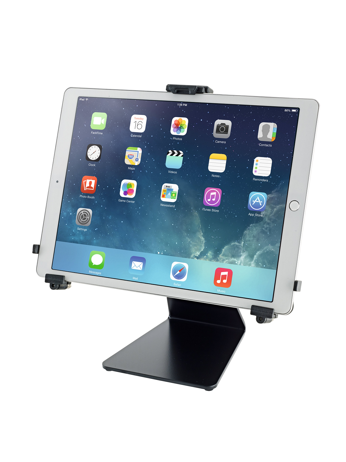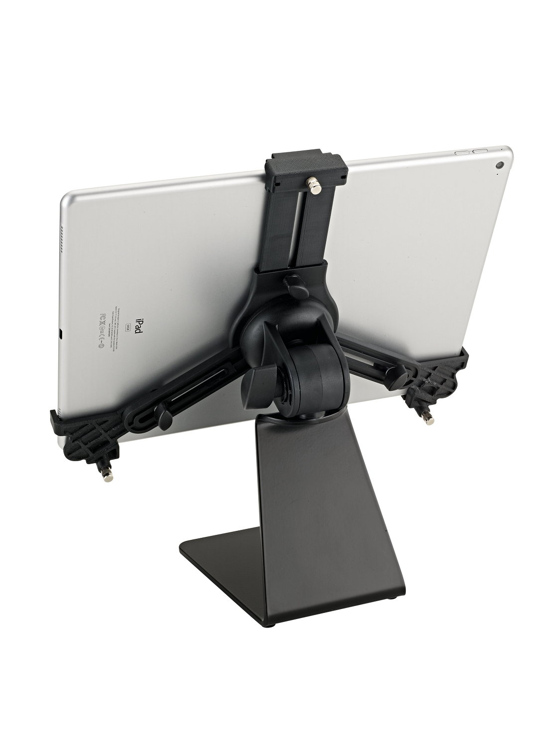 Stabiles Tischstativ mit universellem Tablet Halter für verschiedene Modelle. Mit diesem hochwertigen Tischstativ haben Sie Ihr Tablet immer in Reichweite, egal ob Sie lesen, im Internet surfen oder einfach nur Bilder und Videos betrachten möchten. Die individuell einstellbaren Haltearme ermöglichen den Einsatz von Tablets mit einer Höhe von 128 bis 232 mm und einer Breite von 222 bis 334 mm (wie z. B. iPad, iPad Air, iPad Pro, Amazon Fire HDX 8.9, Samsung Galaxy Tab ab 9.7, Google Nexus 9, Asus Transformer oder Microsoft Surface sowie Surface Pro). Die Tiefe des Tablets kann dabei zwischen 6 und 11 mm variieren. Beim erstmaligen Einstellen werden die drei Haltearme mittels Klemmschrauben auf die Größe und Tiefe des Tablets eingestellt. Für die weitere Nutzung wird das Tablet dann ganz einfach und schnell über einen Schnappverschluss eingesetzt und auch wieder entnommen. Die Halterung hält das Tablet garantiert sicher und fest. Eine handliche Flügelmutter ermöglicht die stufenlose Einstellung der Neigung, so dass jeder Anwender seine individuelle Position leicht finden kann. Das Tablet kann zwischen Hoch- und Querformat kurzerhand gedreht werden, wobei ein selbstständiges Drehen verhindert wird.Anmelden