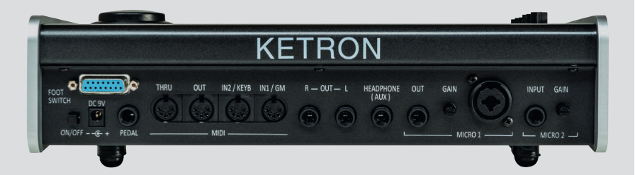 R/L Stereo, Pedal Volume, Micro 1 out, Stereo Kopfhörer