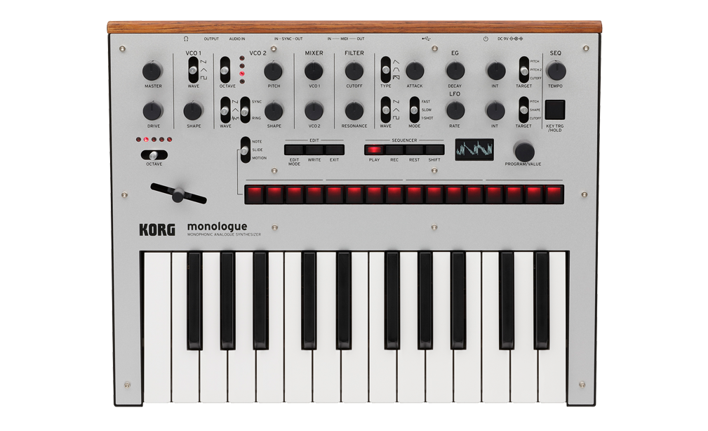 Mit voll programmierbarer analoger Synthese, neuem Voicing und mächtigen Features verkörpert der 25-tastige monologue wie sein großer Bruder minilogue eine neue Generation von Analogsynthesizern.Obwohl der monologue mit schickem Layout, klarem Workflow und hochwertiger Konstruktion dem begehrten minilogue nacheifert, ist er ein eigenständiger Synth mit unverwechselbarem Sound, neuem Voicing und kreativer Klanggestaltung - und das zum Schnäppchenpreis. Filter, Modulation, Drive und LFO wurden neu entwickelt und können druckvolle Bässe und herausragende Leadstimmen oder andere fantastische Monosounds erzeugen, die alle Stärken seiner Single-Voice-Technik demonstrieren. Auch der Step Sequenzer wurde deutlich erweitert und lässt sich jetzt intuitiver und vielschichtiger editieren.