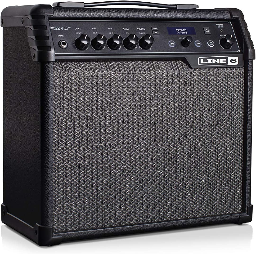 Der Spider V 30 ist ein Übungsverstärker, mit dem man ohne Ende jammen kann. Neben einer Ausgangsleistung von 30W bietet er über 200 Verstärker und Effekte, eine Fullrange-Verstärkung und einen 8"-Lautsprecher.