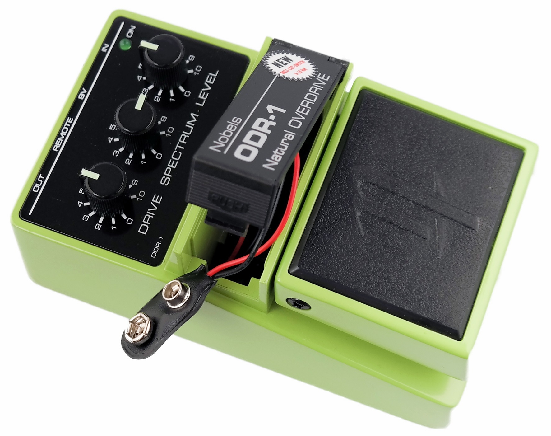 Schalter unter dem Batteriedeckel, wählbar zwischen Original ODR-1 Sound und leicht reduziertem Sub-Bass (Bass Cut).