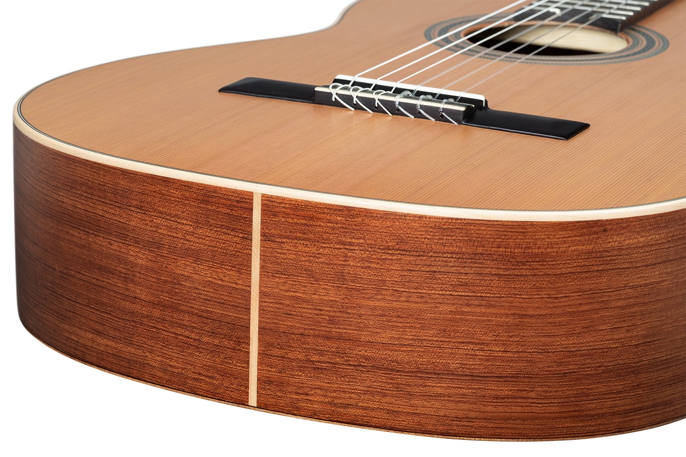 Der Korpus aus gemasertem Bubinga verleiht dem Instrument nicht nur eine edle Optik, sondern unterstützt auch die klangliche Tiefe durch ein seidiges Satin-Finish.