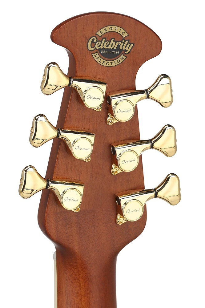 Diese exklusive Ovation Celebrity Elite Deluxe Plus Limited Edition 2026 verkörpert die perfekte Symbiose aus innovativer Bauweise und edler Optik.Die wunderschöne Decke aus geflammtem Gabun-Mahagoni verleiht dem Instrument einen warmen und zugleich definierten Charakter.