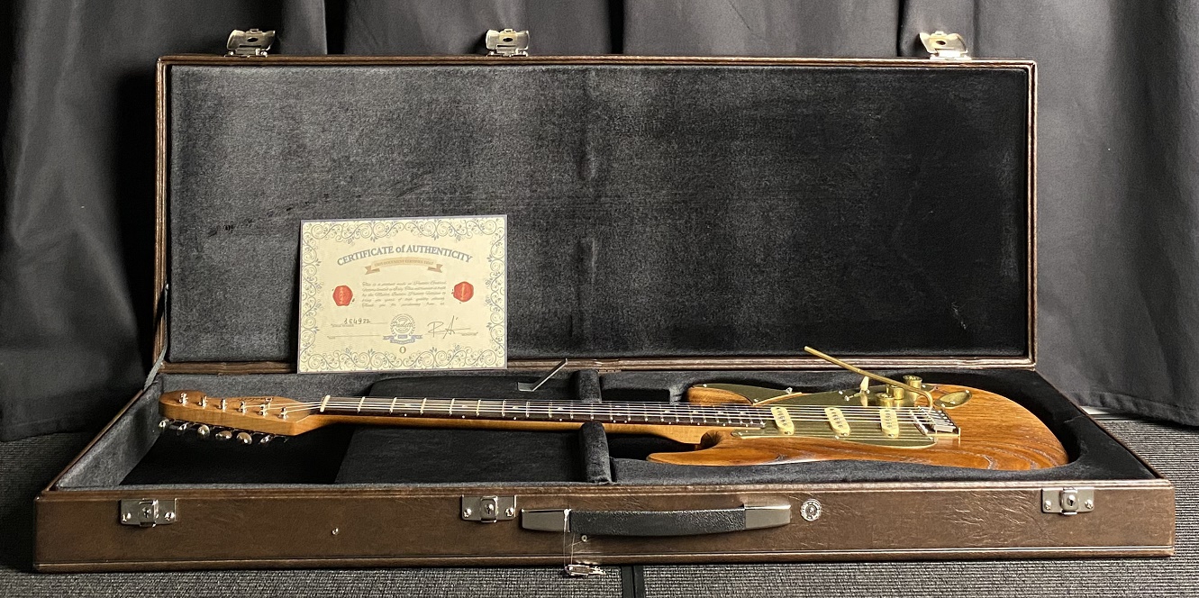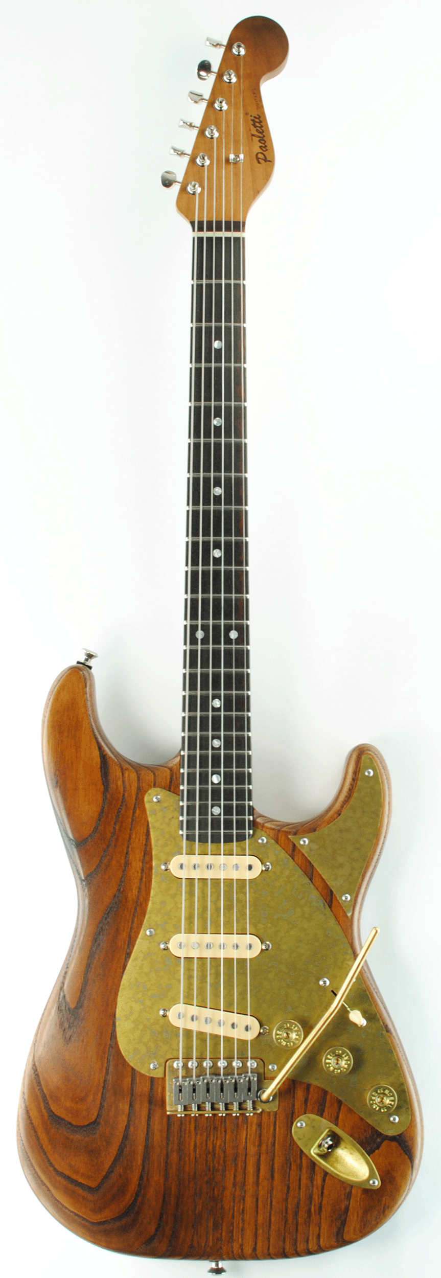 Paoletti Gitarren, handgeferigt. Nach langjähriger Erfahrung als Gitarrenbauer und Ampdesigner gründete Fabrizio Paoletti seine Firma Paoletti Guitars 2005 in der schönen Toscana. Familie Paoletti verdiente seit dem späten 19. Jahrhundert ihre Brötchen als Winzer - darauf basiert Fabrizio Paolettis Idee, dass Kastanienholz von 150 bis 180 Jahre alten Weinfässern für den Gitarrenbau zu verwenden. Die Bodies der Paoletti Gitarren bestehen immer aus diesem Holz, für die Hälse wird Roasted Maple verwendet. Jede Gitarre ist ein individuelles Einzelstück, geagete Oberflächen und Metallpickguards geben den Instrumenten eine interessante Relic Optik.