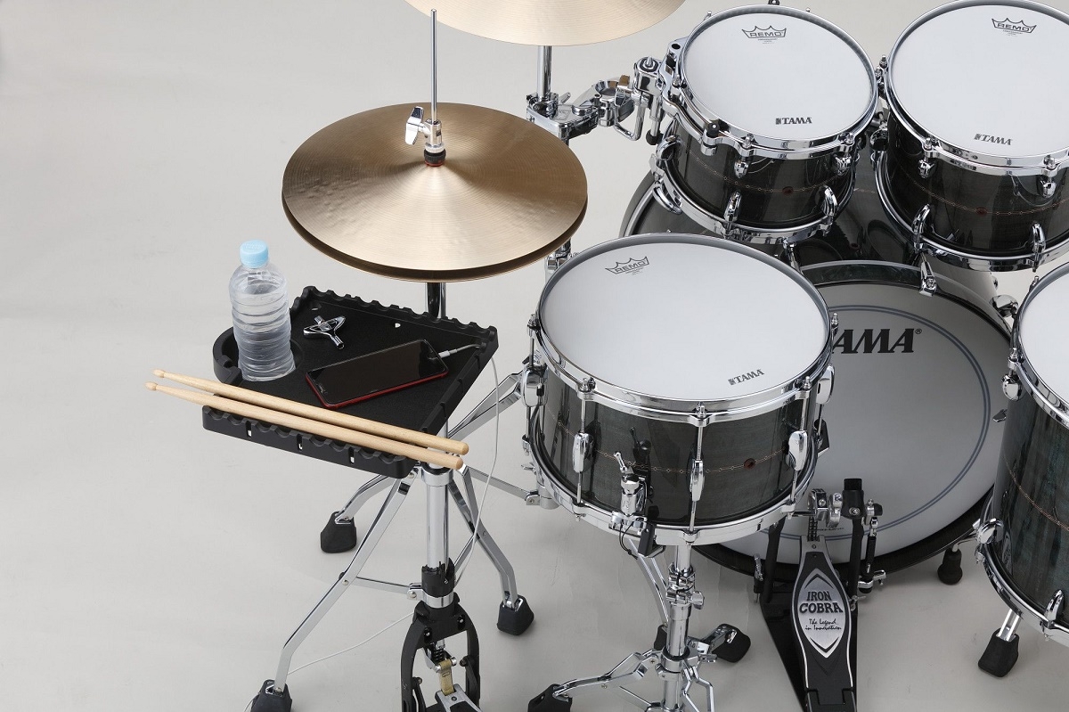 Der TAT10 Accessory Tray bietet Schlagzeugern:innen die perfekte Ablagemöglichkeit, um wichtige Utensilien griff bereit und in Reichweite zu platzieren.Die mit Filz bezogene 235mm x 254mm große Ablagegefl äche verfügt über einen integrierten Getränkehalter und über ringsum runde Einkerbungen, um Drumsticks am Wegrollen zu hindern.