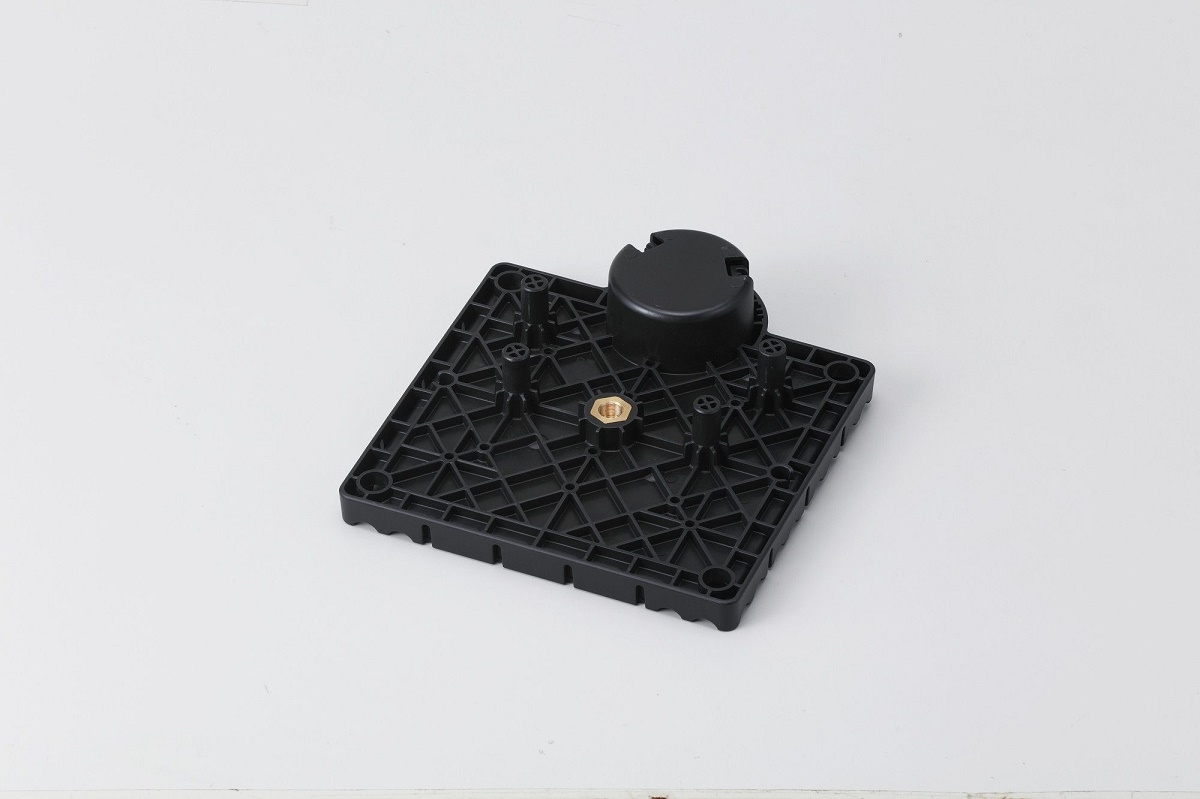 Auf der Unterseite befi nden sich vier unterschiedlich angeordnete Zapfen, für eine möglichst variable Montage mit der MC61 Multiclamp.