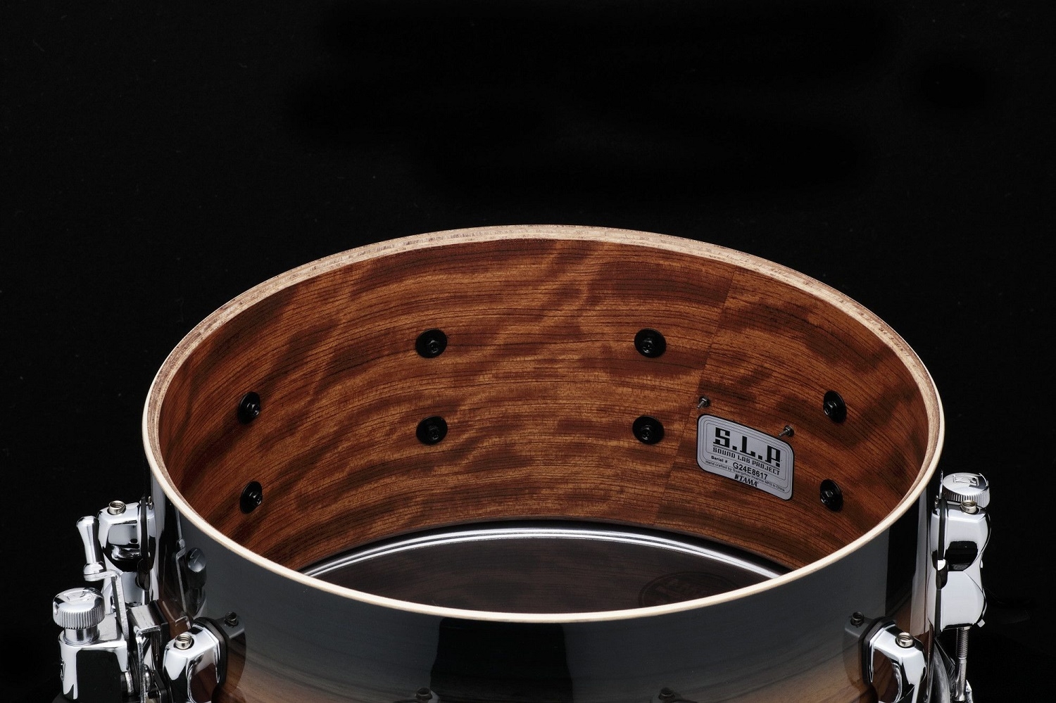 Diese limitierte Auflage der Snare Drum S.L.P. ist mit einem Bubinga/Ahorn-Hybridkessel ausgestattet.Der tiefe und kräftige Ton des Bubingaholzes in Kombination mit dem hellen und vollen Klang des Ahornholzes ergibt einen sehr ausgewogenen Sound.