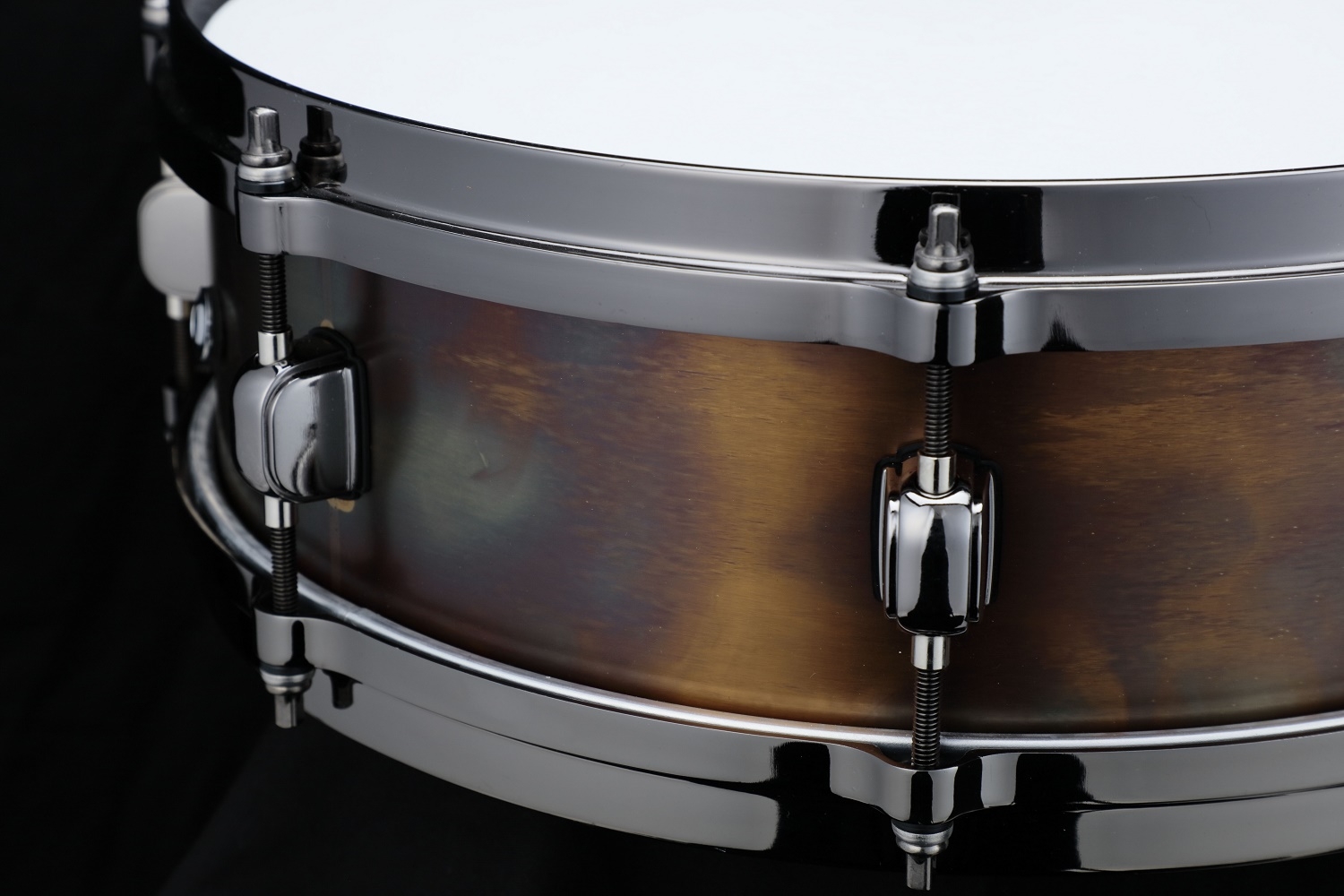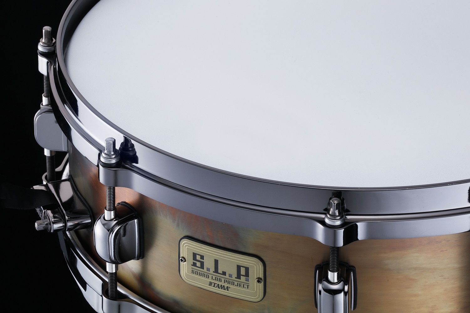 Endlich gibt es wieder eine S.L.P. Dynamic Bronze Snare! Die ungewöhnliche Größe , 14“ x 4,5“, und das interessante Antique Finish fallen sofort ins Auge.Durchsetzungsvermögen und Power sind, dank des 1,2mm Bronze Kessels und den Gußspannreifen, eine Stärke dieser Snare.