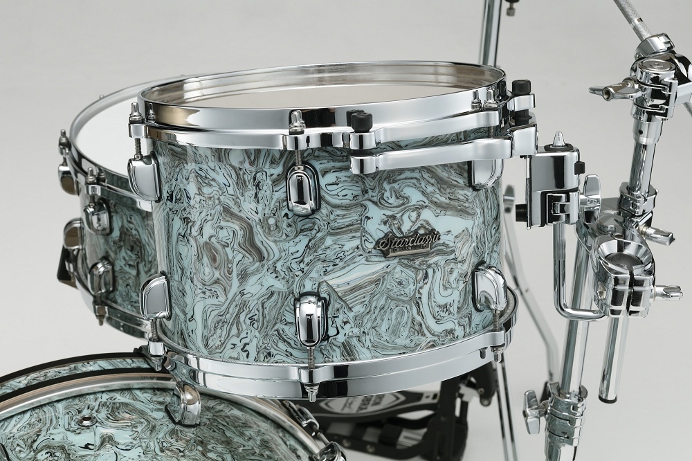 In den 80er Jahren waren die Superstars und Imperialstars von TAMA der Inbegriff des perfekten Schlagzeugs für die damalige Zeit. Aber die Konstrukteure und Designer von TAMA wollten etwas, dass über Trends hinausgeht, etwas Zeitloses - ein Schlagzeug, das die Leidenschaft eines Spielers versteht und den Ausdruck jedes Genres, Stils, jeder Stimmung und Technik ermöglicht. Sie schufen die Starclassic Maple Drums... und lösten damit die Revolution der dünnen Kessel aus. Jetzt bietet die neue Exotic Finish-Linie wunderschöne, einzigartige Exotenholz-Oberflächen für einen besonders luxuriösen Touch.Es stehen zahlreiche Optionen zur Verfügung, um die vielfältigen und kritischen Bedürfnisse professioneller Schlagzeuger zu erfüllen, darunter eine Auswahl von mehr als 30 verschiedenen Kesselgrößen. Starclassic Maple bietet außerdem drei Kessel-Hardware-Finishes zur Auswahl: Black Nickel, Chrome und Smoked Black Nickel.
