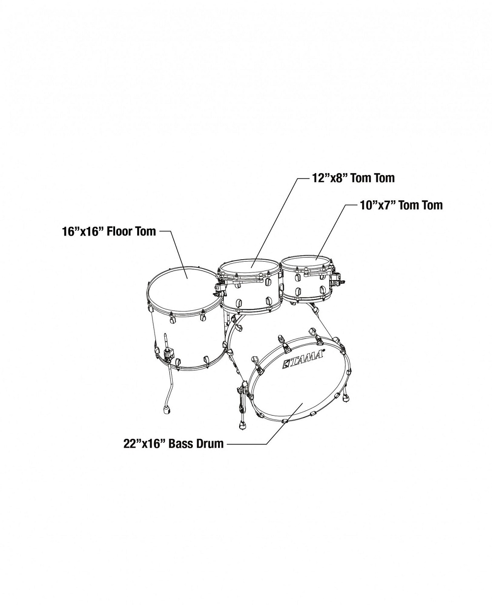 22" x 16" BD, 10" x 7", 12" x 8" RT, 16" x 16" FT