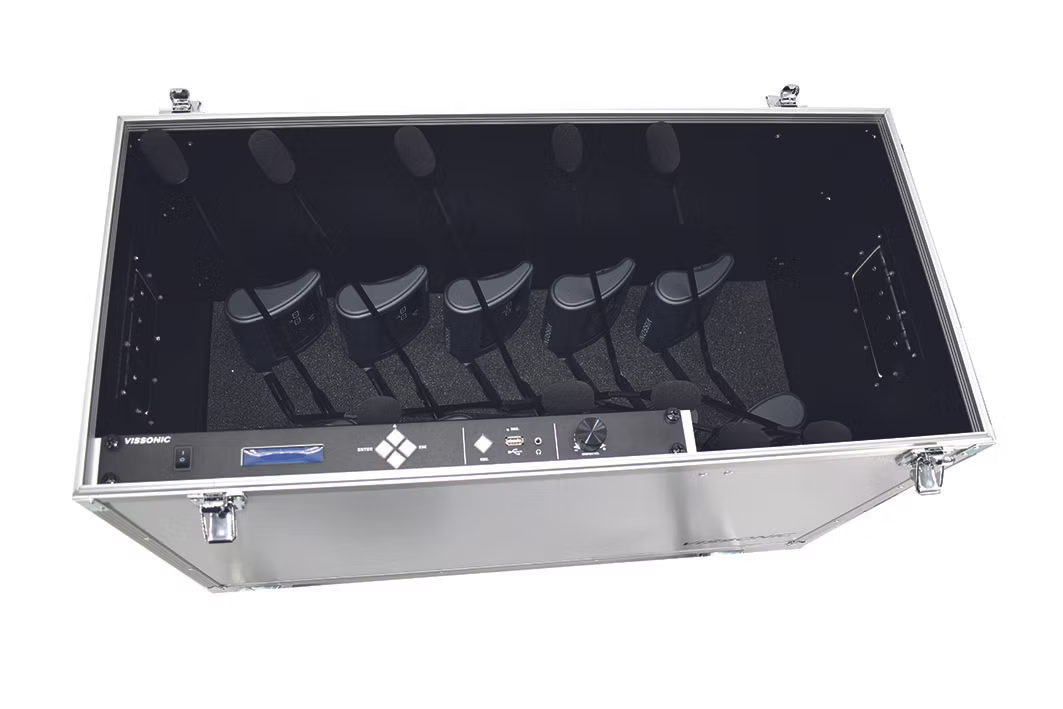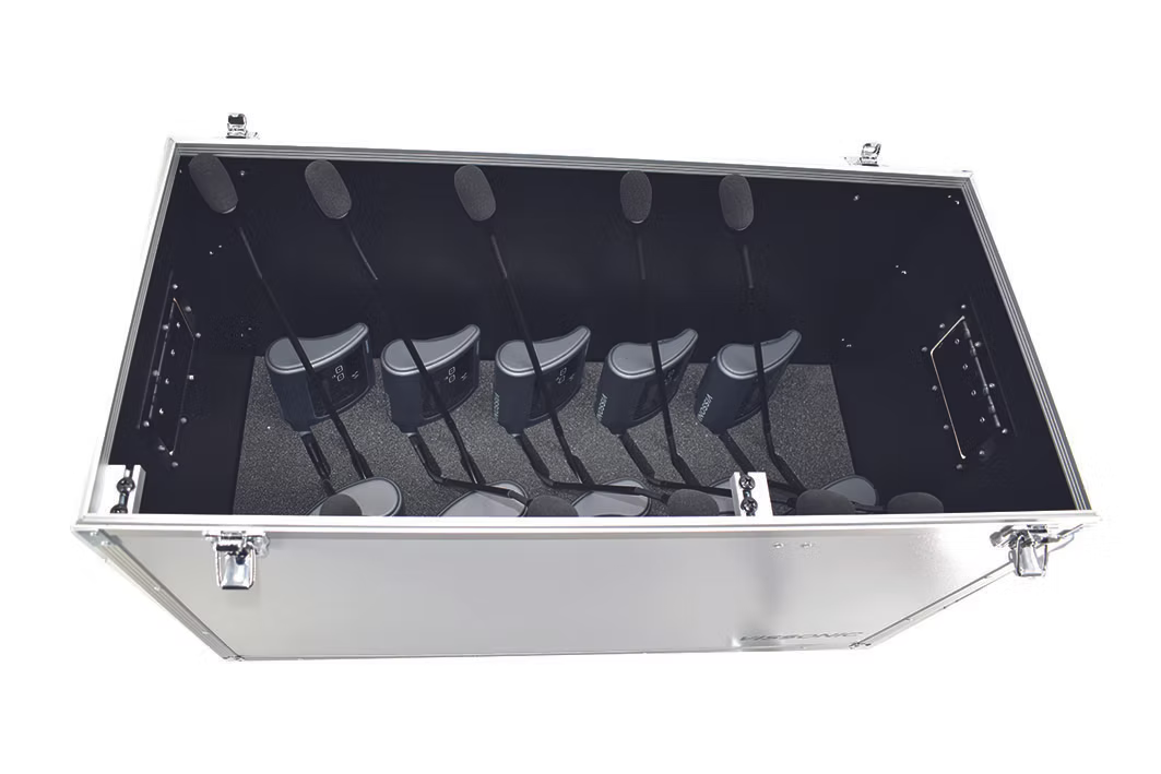- Aufbewahrung von bis zu 20 Sprechstellen mit angeschraubtem Mikrofon.