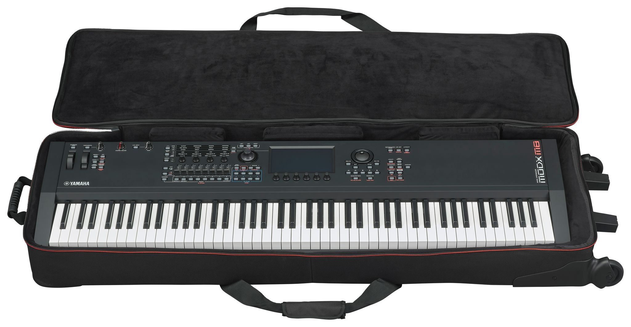 Hochwertiges GigBag für Yamaha MODX M8 Synthesizer, mit Rollen, Farbe Schwarz, mit rot /weißem Yamaha MODX Aufdruck. Das GigBag bietet neben einem Schultergurt auch Gurte um es als Rucksack tragen zu können.Anmelden